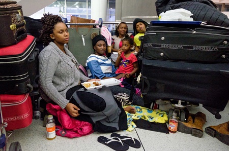 She spent Sunday — which was supposed to be her wedding day — curled up on the airport’s floor with her wedding dress and 15 of her family members.