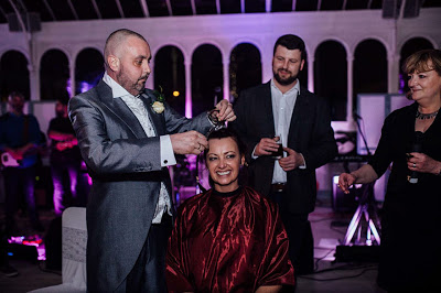 In a loving tribute to her terminally ill groom, a bride decided to shave her head at her very own wedding reception in Liverpool.