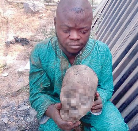 According to Tribune, the man was reportedly caught with the head of a corpse he exhumed at the back of Basic Community Primary School in the area.